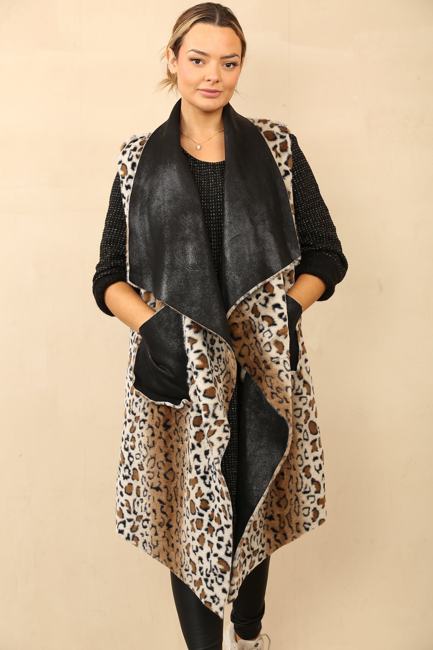 Faux Suede Leaopard print reverseible gilet
