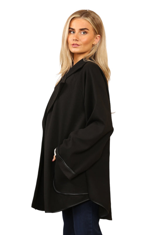 Single button jacket with black cuff and pockets trim